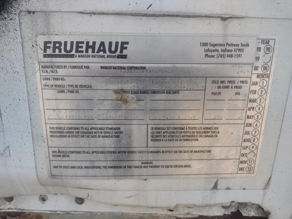 Box Trailer, 1999 Fruehauf VIN 1JJV532FXY656412