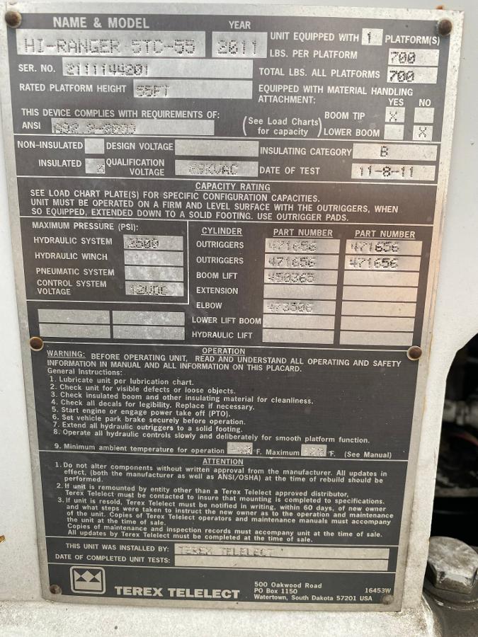 2011 Ford F750 Super Duty TEREX HI-RANGER TC SERIES